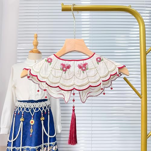 Kids Girls Chinese Vintage Embroidery Shawl Wrap Pearl Beaded Tassels False Collar Scarf Dresses Capelet 5