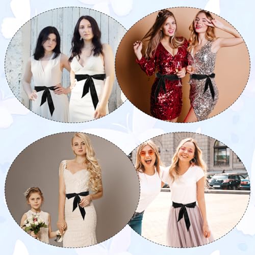 Bow Belts for Women, Long Double Side Satin Sash Belt Ceremony Belt for Wedding Bridal Special Occasion Dresses 2'' Wide(Black) 4