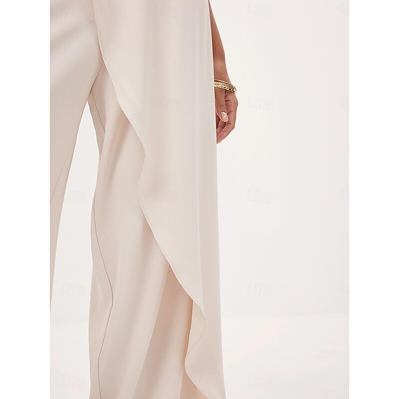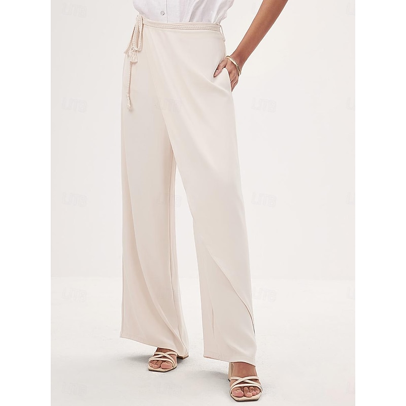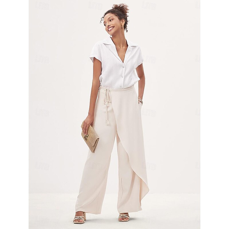 More information about Women's Culottes Wide Leg Asymmetric Belted Full Length Beige Summer