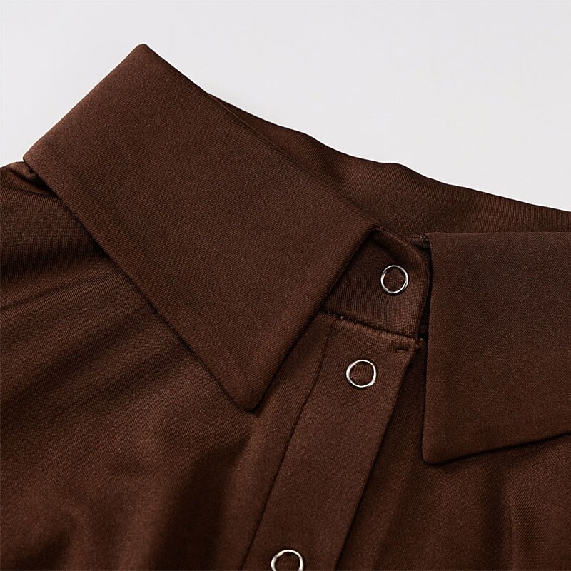 Women's Bodysuit Button Solid Color Shirt Collar Streetwear Home Street Regular Fit Long Sleeve Black Brown White S M L Spring Cold Weather 5