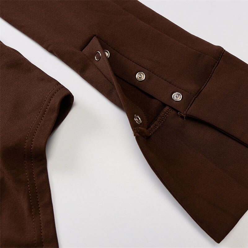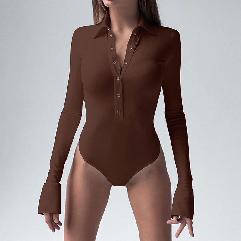 Highlights [Fabric] : Expertly crafted from a polyester blend, this women's bodysuit ensures breathability and soft comfort, maintaining its shape throughout the day due to its natural stretch. [Fit] : This bodysuit promises a regular fit, perfectly contouring to your body's silhouette while offering ease of movement, making it a great choice for daily wear. [Design Highlights] : Styled with long sleeves that feature elegant flared cuffs, this bodysuit embodies sophistication. The shirt collar and button-down front provide a chic and polished appearance, ideal for transitioning between casual and formal settings. [Occasions] : Designed to adapt to various settings, it is perfect for street, vacation, or casual daily wear. Whether you're going out or staying in, this bodysuit offers versatile style options and can be effortlessly paired with skirts, jeans, or trousers. [Size Range] : Available in sizes S, M, and L, ensuring a suitable fit for a broad clientele. The solid color options of black, brown, and white add to its versatile appeal, allowing multiple styling combinations.