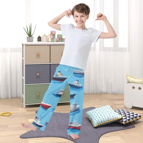 ZZXXB Marine Ships Boys Long Pants Soft Trousers Elastic Waist Kids Lounge Bottoms with Pockets S-XL 1