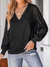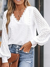 More information about Women's White Elegant Lace Tops Eyelet Blouse Dressy Tops Plain Lace Cut Out Street Daily Fashion V Neck Regular Fit Romantic Petite Tops Summer Holiday Wear Black White