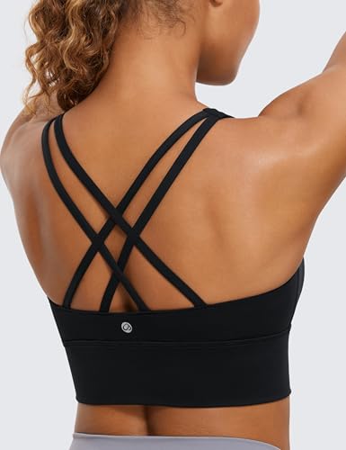 CRZ YOGA Womens Strappy Longline Sports Bra - Medium Impact Criss Cross Yoga Padded Workout Crop Top 1
