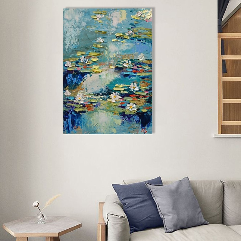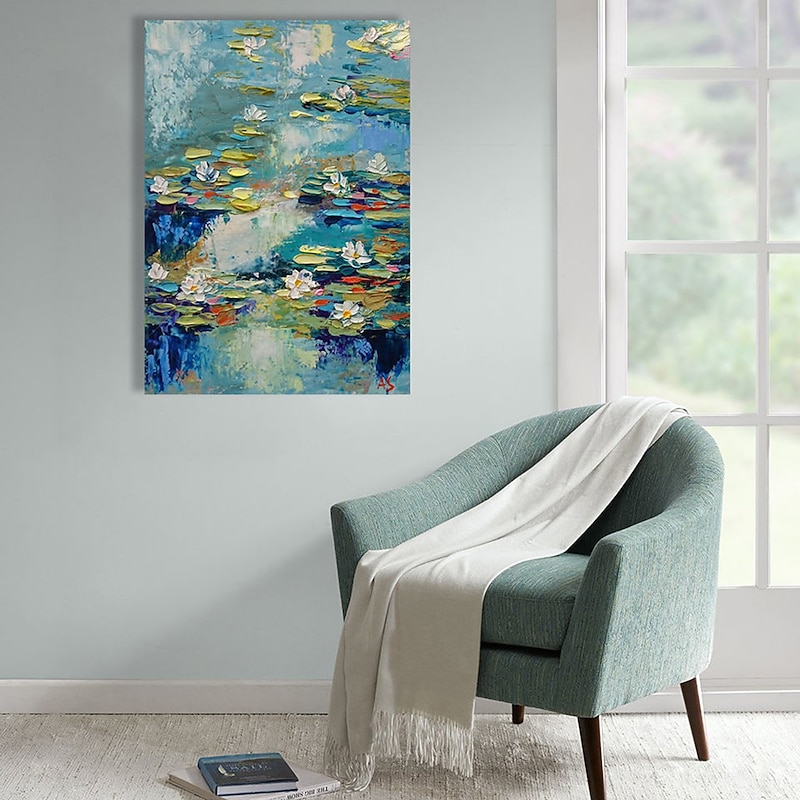More information about Handmade Oil Painting Canvas Acrylic Wall Art Decoration Modern Abstract Knife Lotus Pond Landscape for Home Decor Rolled Frameless Unstretched Painting