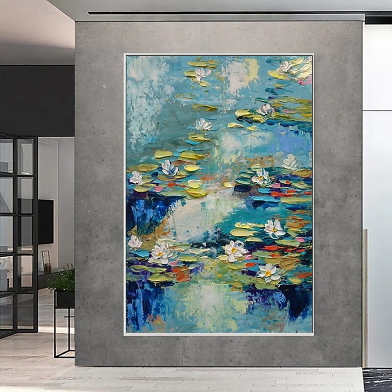 Handmade Oil Painting Canvas Acrylic Wall Art Decoration Modern Abstract Knife Lotus Pond Landscape for Home Decor Rolled Frameless Unstretched Painting 1
