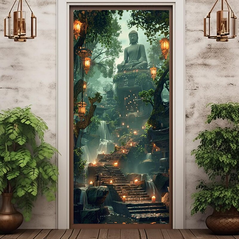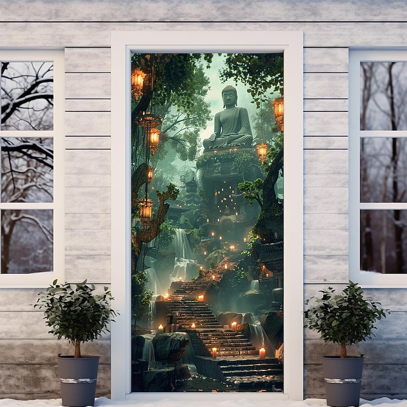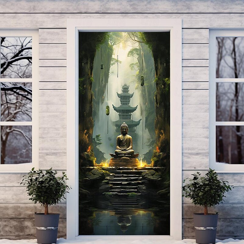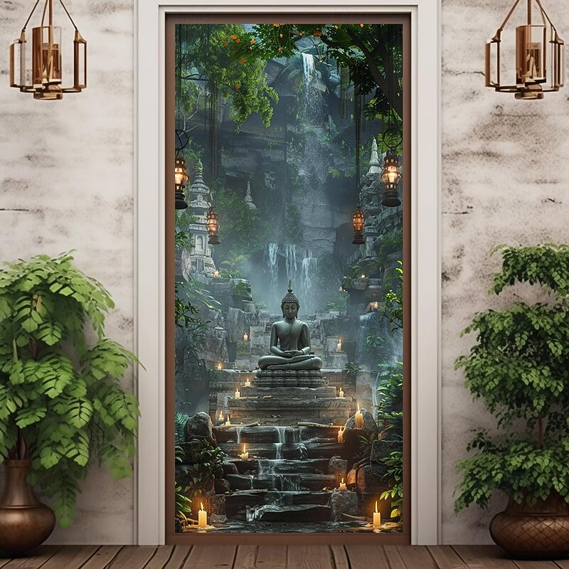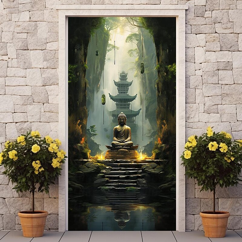 HOT ! Boho Buddha Door Covers Mural Decor Door Tapestry Door Curtain Decoration Backdrop Door Banner Removable for Front Door Indoor Outdoor Home Room Decoration Farmhouse Decor Supplies