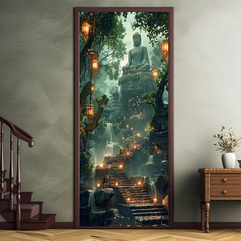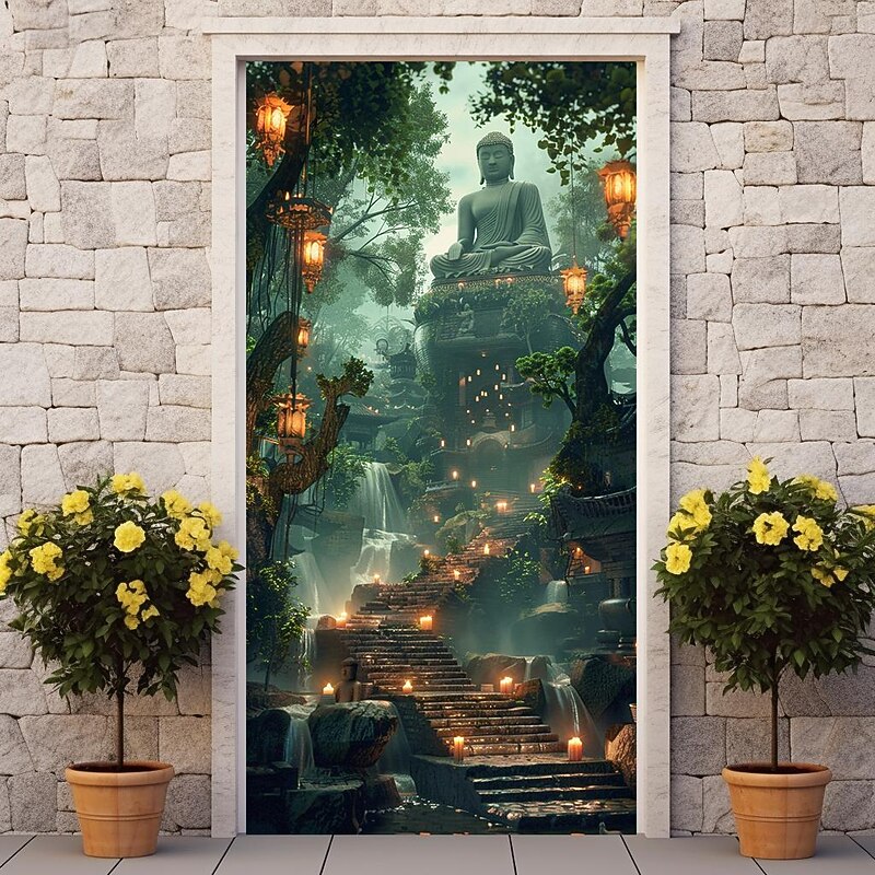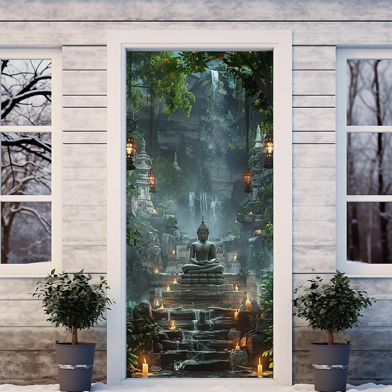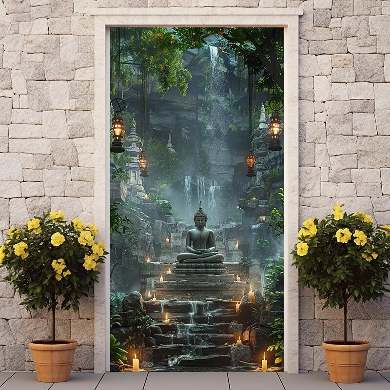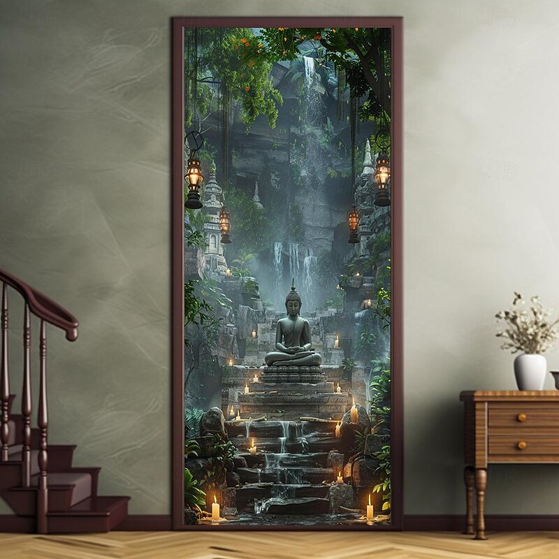 HOT ! Boho Buddha Door Covers Mural Decor Door Tapestry Door Curtain Decoration Backdrop Door Banner Removable for Front Door Indoor Outdoor Home Room Decoration Farmhouse Decor Supplies