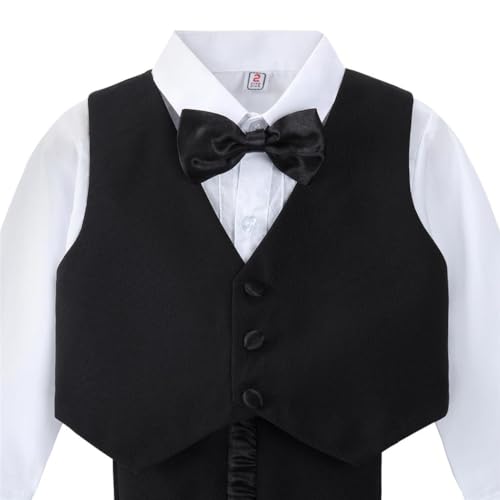 • 【Baby Tuxedo Suit 5 Pieces Set】Includes Tux blazer with tail, White dress shirt, Adjustable Bow tie, Vest, and Pants. Made of luxurious polyester (65%) and cotton (35%). Color: Black / White / Ivory
