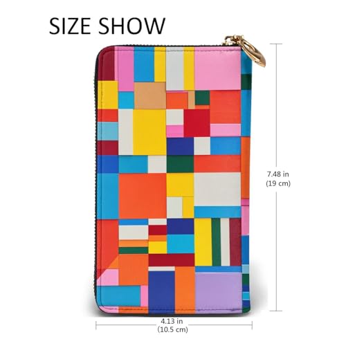 Women's Long Cash Wallet, PU Leather Elegant Clutch Change Purses with Zipper, Travel, Gifts (Colorful Square Print) 5