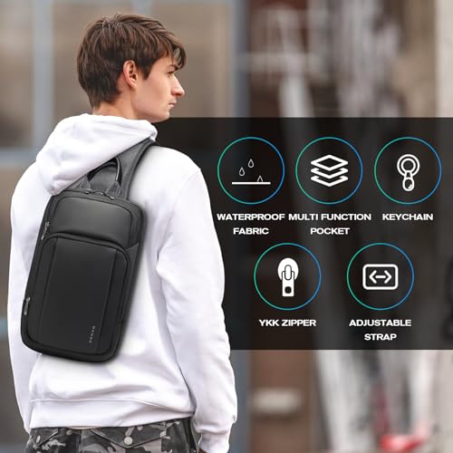 • WATERPROOF MENS SLING BAG: BANGE shoulder bag is made of high quality water resistant Oxford cloth for the main body. Per the front, we use waterproof PU materials, and it is durable and anti-scratch, which is also good looking in the appreance.