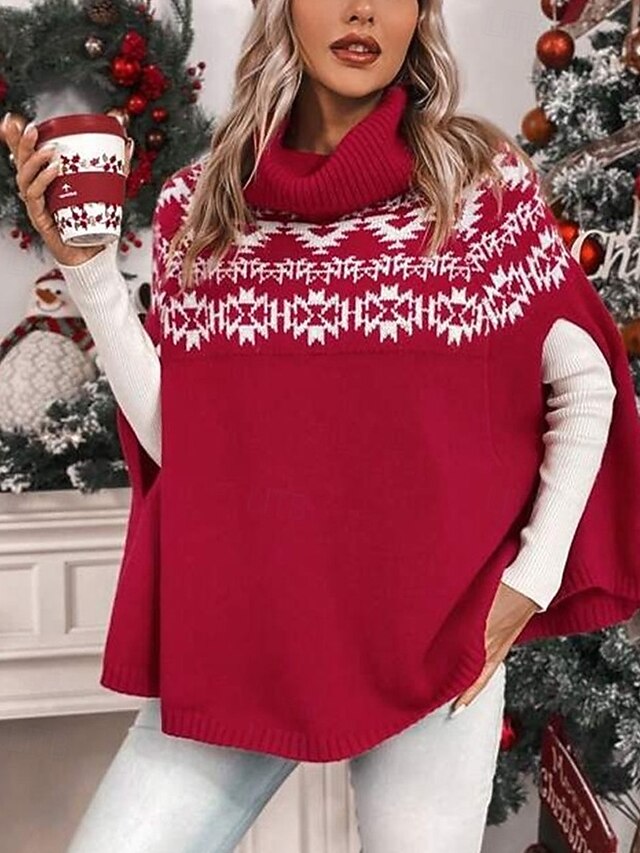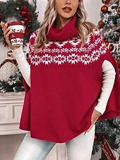 More information about Women's Sweater Shrug Fair Isle Sweater Fashion Casual Geometric Ribbed Turtleneck Knitted Long Sleeve Regular Tops Knit Christmas Outdoor Daily Red Fall Winter