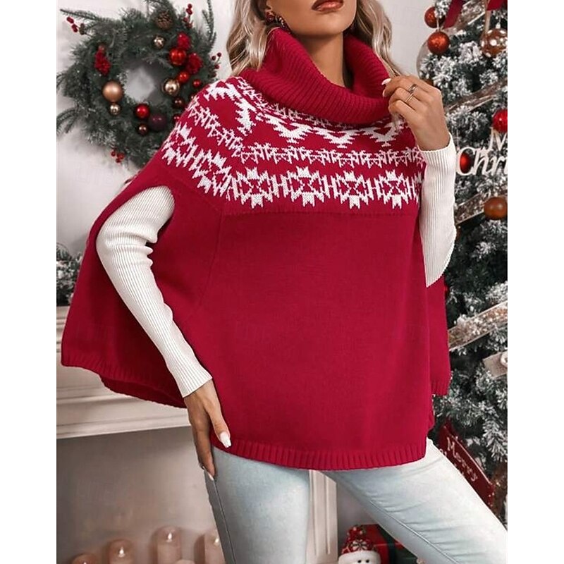 HOT ! Women's Sweater Shrug Fair Isle Sweater Fashion Casual Geometric Ribbed Turtleneck Knitted Long Sleeve Regular Tops Knit Christmas Outdoor Daily Red Fall Winter