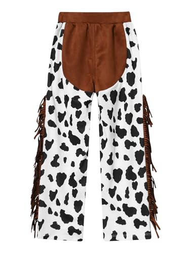 easyforever Kids Boys Cowboy Trousers Cow Print Tassels Pants for Halloween Cosplay Role Play Western Chaps Dress Up 6
