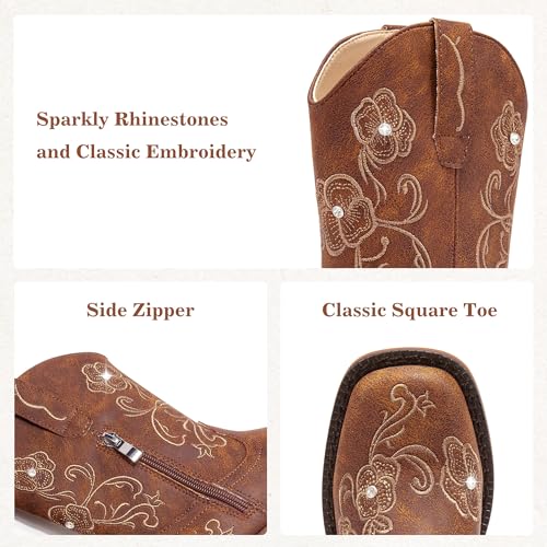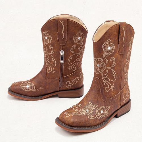 More information about Girls Cowboy Boots Classic Western Floral Embroidery Sparkly Rhinestone Little Big Kids Cowgirl Boots Side Zipper Mid Calf Square Toe Toddler Girls Boot Riding Concert Party Wedding Halloween