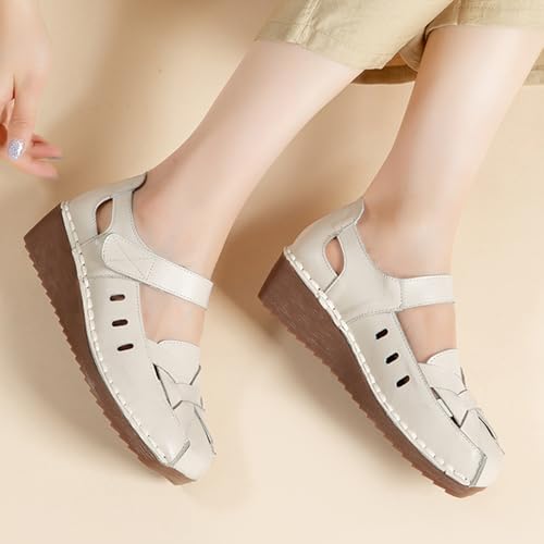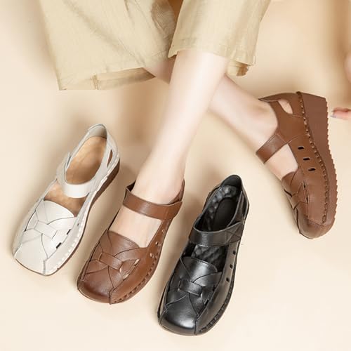 Women's Woven Mary Jane Wedge Sandals,Comfortable Closed Toe Cutout Leather Soft Sole Ankle Strap Oxford Dress Pumps 6