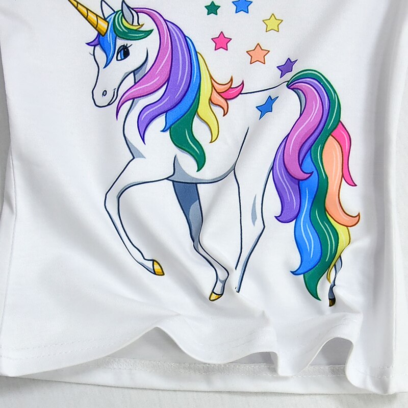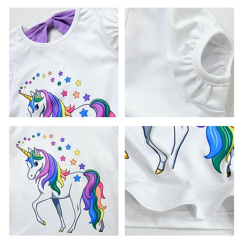 More information about Kids Girls' Unicorn 2Pcs T-shirt&Skirt Clothing Set Bow Short Sleeve Purple Blushing Pink Fuchsia Horse Unicorn Cartoon Bow Tulle Cotton Basic