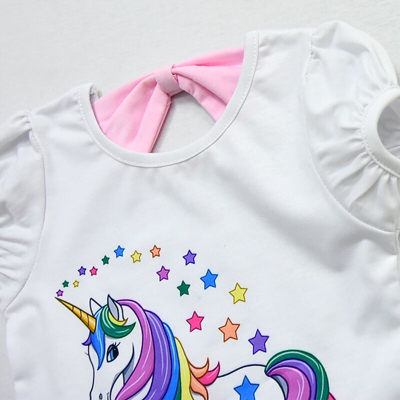 HOT ! Kids Girls' Unicorn 2Pcs T-shirt&Skirt Clothing Set Bow Short Sleeve Purple Blushing Pink Fuchsia Horse Unicorn Cartoon Bow Tulle Cotton Basic