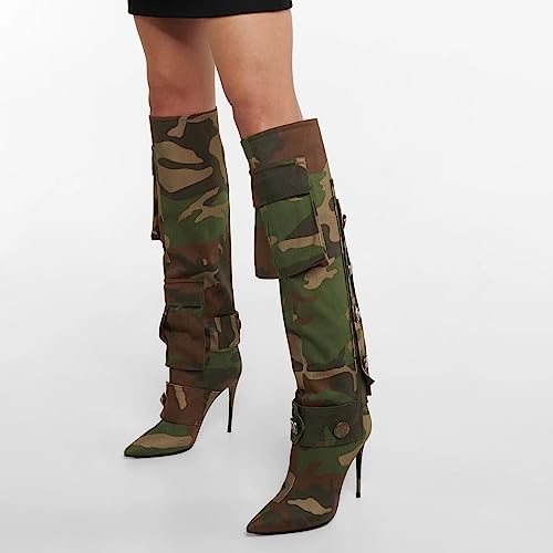 More information about Arqa Women's Stiletto Heel Knee High Camouflage Boots Pointed Toe Multiple Pockets Fashion Boot