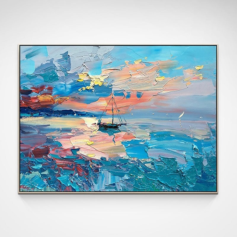 Oil Painting Handmade Hand Painted Wall Art Seascape Sunrise Abstract Bedroom Decoration Paintings Home Decoration Decor Stretched Frame Ready to Hang 11