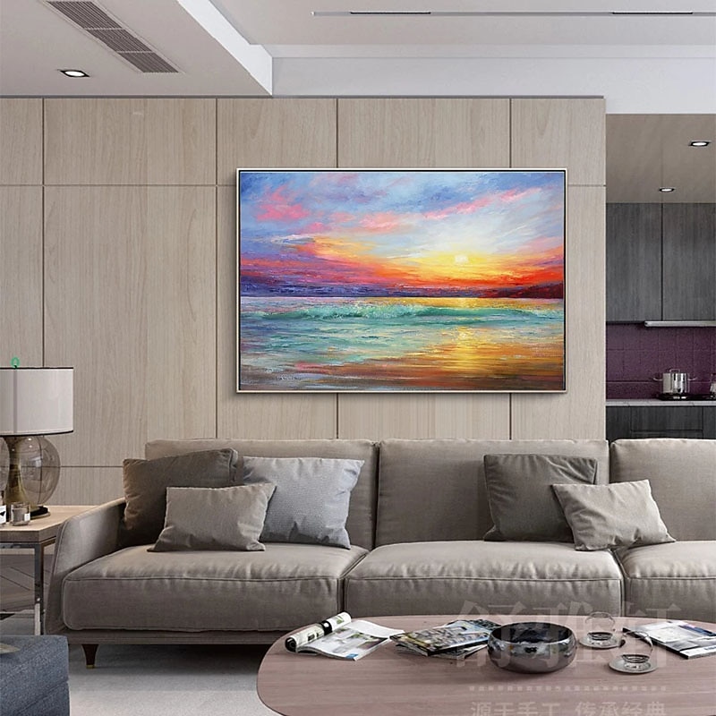 More information about Oil Painting Handmade Hand Painted Wall Art Seascape Sunrise Abstract Bedroom Decoration Paintings Home Decoration Decor Stretched Frame Ready to Hang