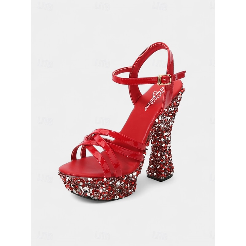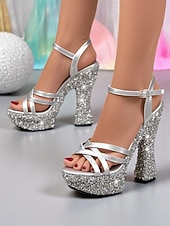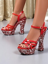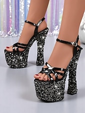 More information about Women's Black Glitter Platform Sandals with Thick Heels - Sparkling High Heels for Nightlife Parties