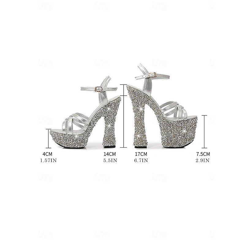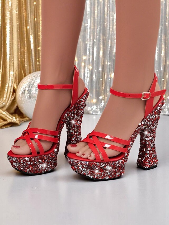 Women's Black Glitter Platform Sandals with Thick Heels - Sparkling High Heels for Nightlife Parties 18