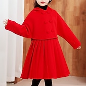 More information about Kids Girls' Dress Solid Colored Long Sleeve Daily Pleated Cute Polyester Above Knee Two Piece Dress Winter 4-13 Years Red