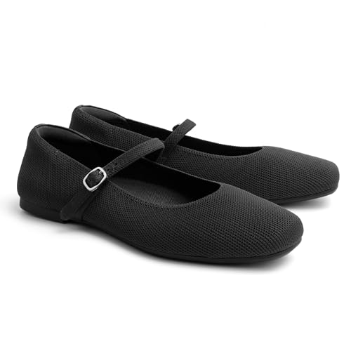 Square Toe Mary Jane Flats for Women Dressy Comfortable Knit Ballet Flat Adjustable Strap for Work 1