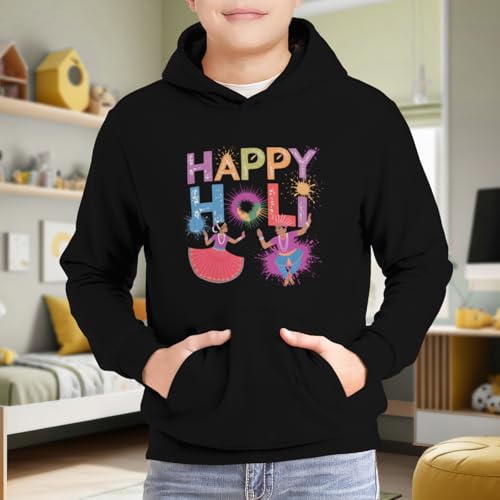 Kids Cool Happy Holi Festival Colors Boys Girls Lightweight Kangaroo Pocket Fleece Hoodies 6