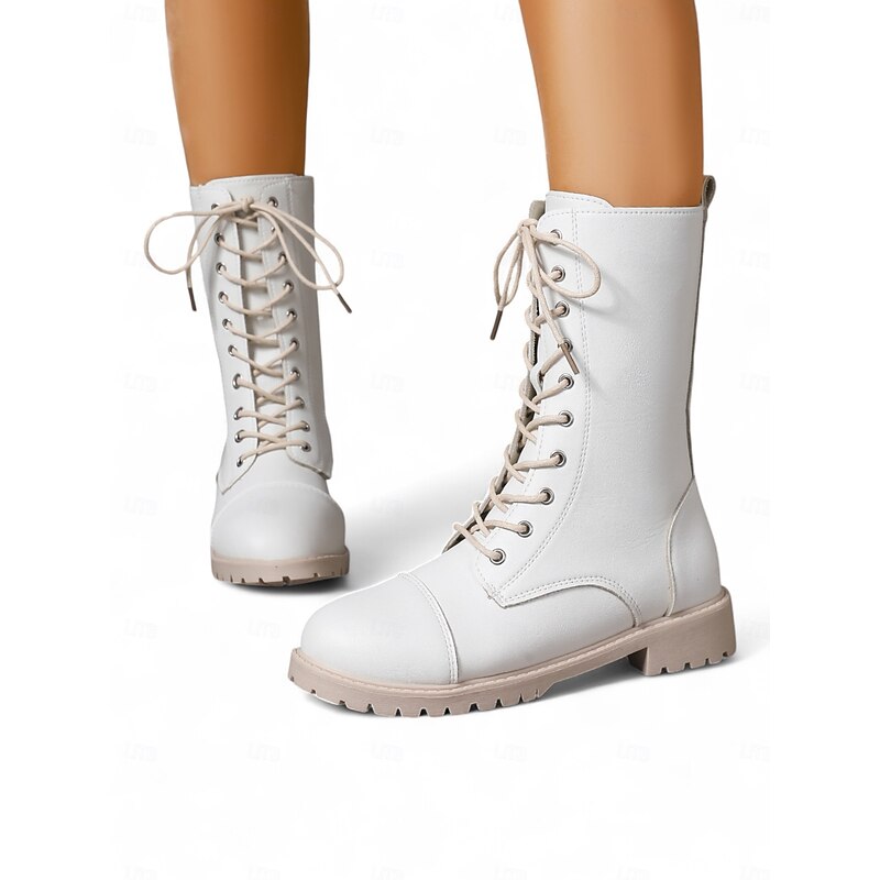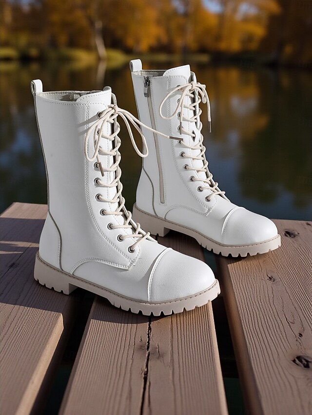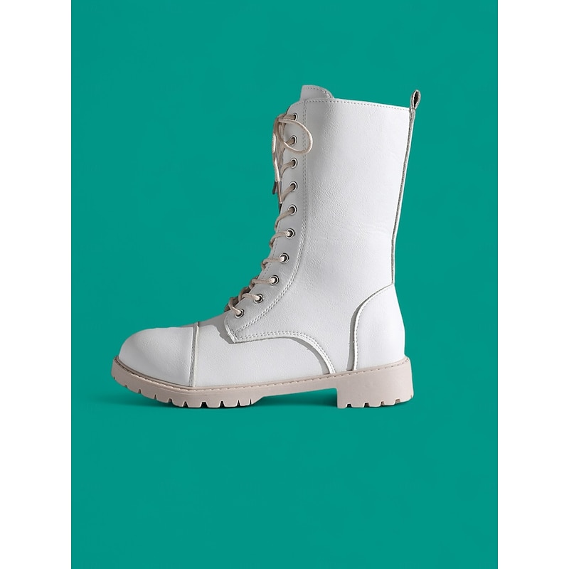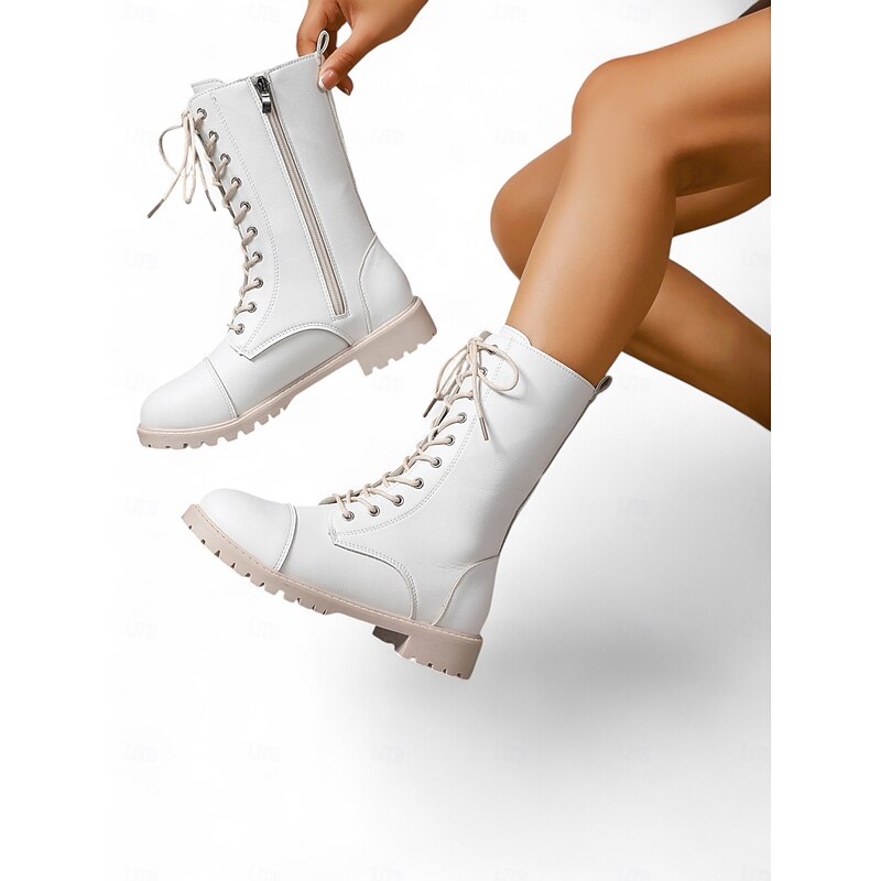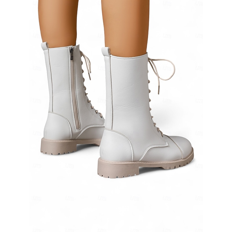 Women's White Lace-Up Combat Boots with Side Zipper , Stylish Urban Fashion Footwear 4