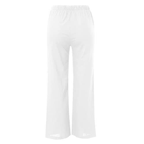 Linen Pants Women Wide Leg Elastic High Waist Pants Summer Flowy Palazzo Pant Loose Casual Beach Trousers with Pockets 5