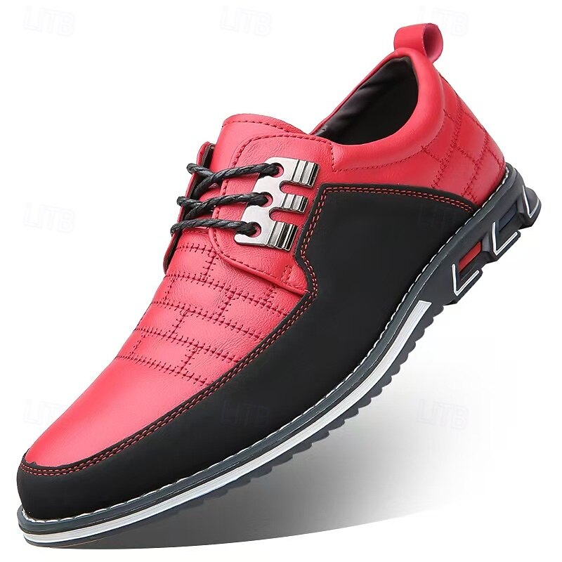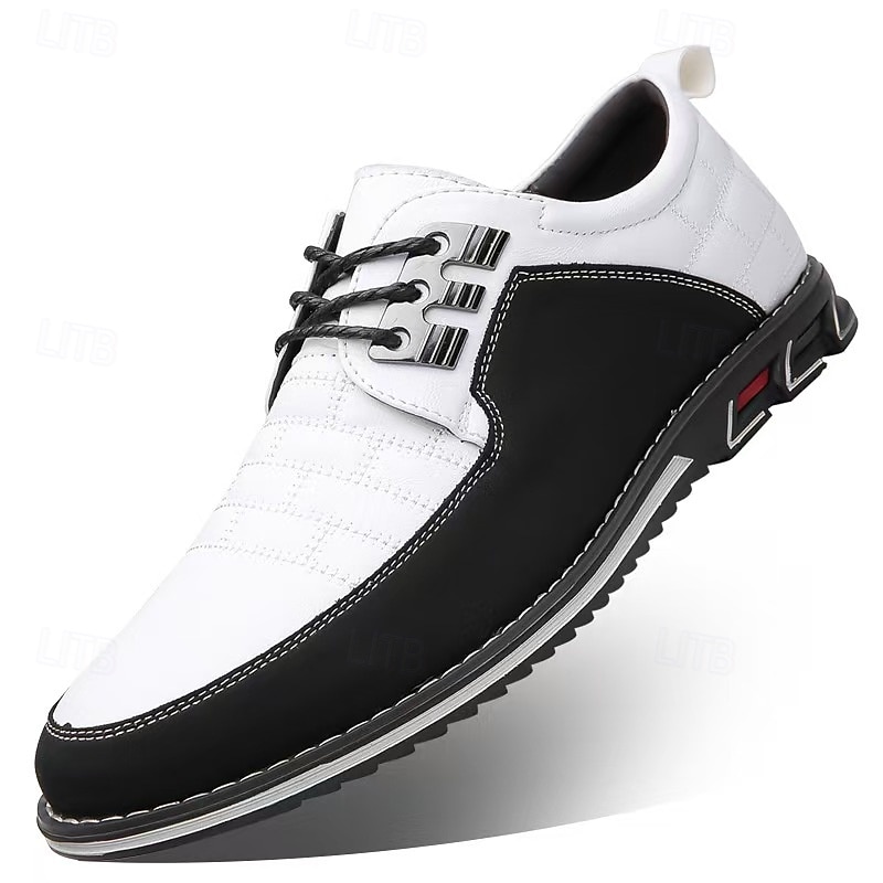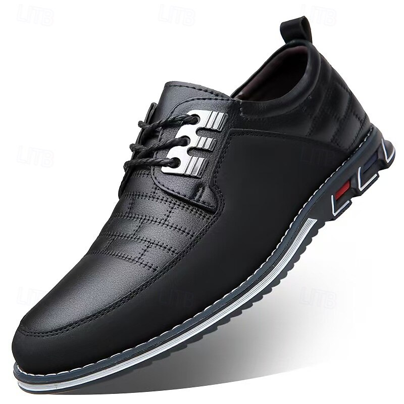 Men's Casual Leather Breathable Lace-Up Sneakers - Stylish Flexible Non-Slip Walking Shoes for Everyday Wear and Outdoor Activities
