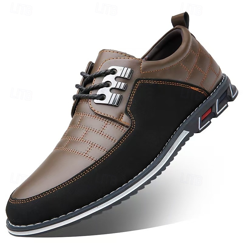 More information about Men's Casual Leather Breathable Lace-Up Sneakers - Stylish Flexible Non-Slip Walking Shoes for Everyday Wear and Outdoor Activities