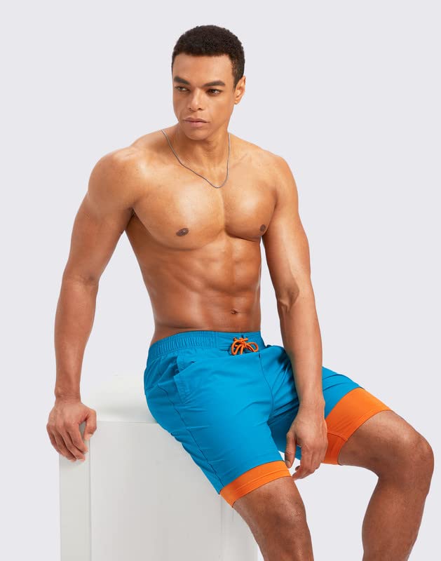 G Gradual Mens Swim Trunks with Compression Liner 5 inch Inseam Quick Dry Bathing Suits with Zipper Pocket-No Thigh Chafing(Blue,L) 5
