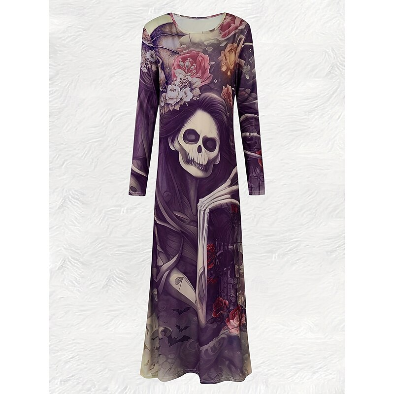 More information about Halloween Women's Skulls Print Maxi Dress Shift Dress A Line Dress Casual Daily Regular Fit Graphic Bull Long Sleeve Crew Neck Black Purple Fall Winter