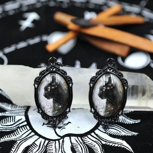 • Gothic Jewelry: Goth black cat cameo earrings can as witch accessories.This black cat is full of mystery
