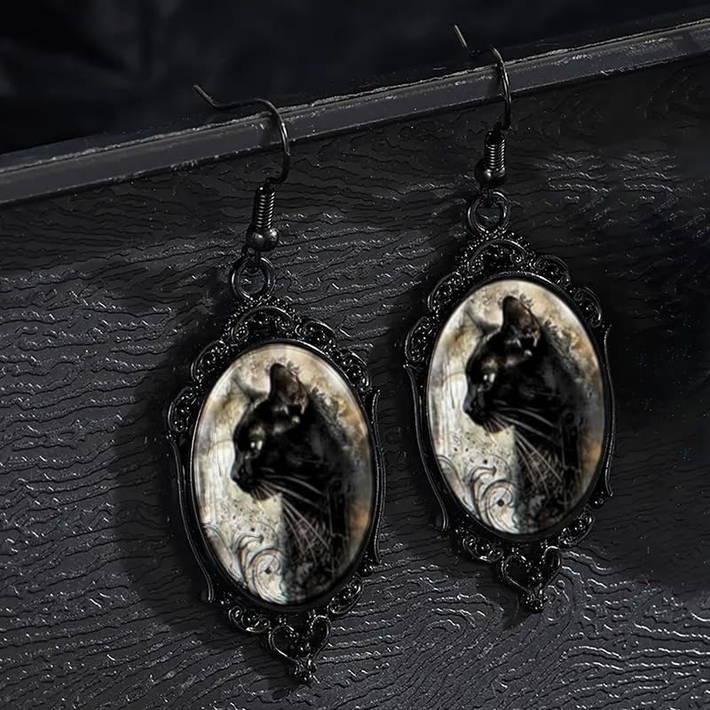 • Unique Design: These vintage-inspired earrings feature a goth cameo design with elegant cat against dark painting style background. Perfect for adding a touch edgy, black cat flair to any outfit or costume