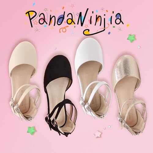 PANDANINJIA Girls Dress Shoes Flats Wedding Party School Toddler Little Kids Ankle Strap Ballet Flats Sandals 6
