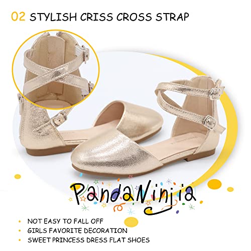 PANDANINJIA Girls Dress Shoes Flats Wedding Party School Toddler Little Kids Ankle Strap Ballet Flats Sandals 5