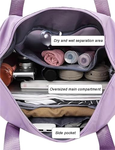 • Gym Bag with Wet Pocket:Separated water-resistant pocket is perfect for storing wet clothes and swimsuits. Great for swim practice or sweaty gym clothes