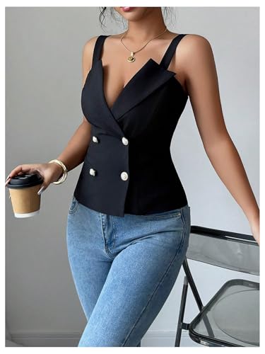 More information about SweatyRocks Women's V Neck Button Front Tank Tops Elegant Sleeveless Work Vest Top