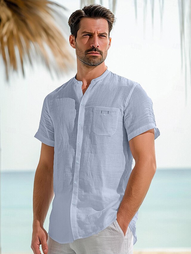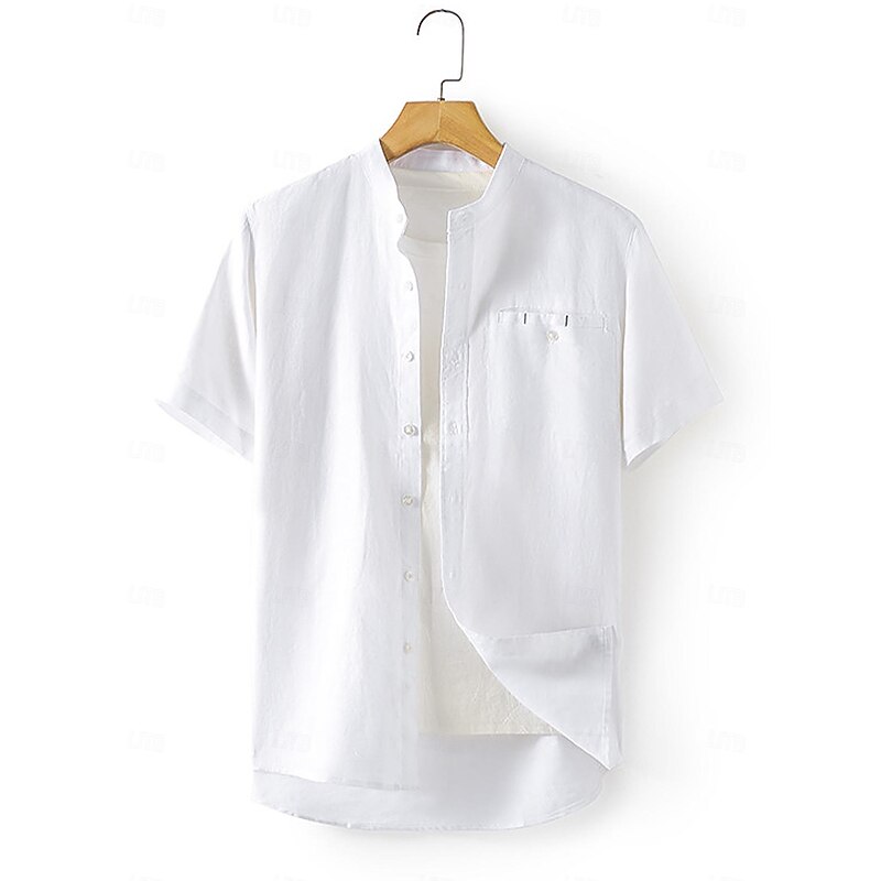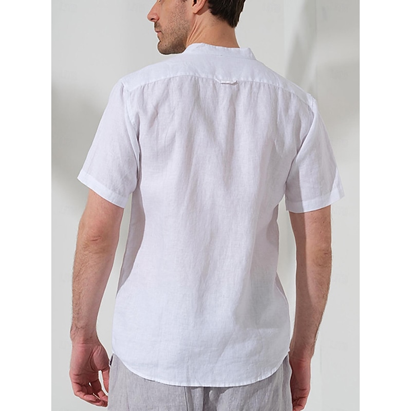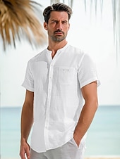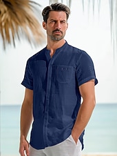 $41.99 - 45% Linen Pocket Men's Linen Shirt Shirt Button Up Shirt Summer Shirt White Dark Navy Blue Short Sleeve Plain Stand Collar Summer Outdoor Daily Clothing Apparel 2025. Shop for cheap Luxury Linen Shirts online? Buy at lightinthebox.com on sale today!