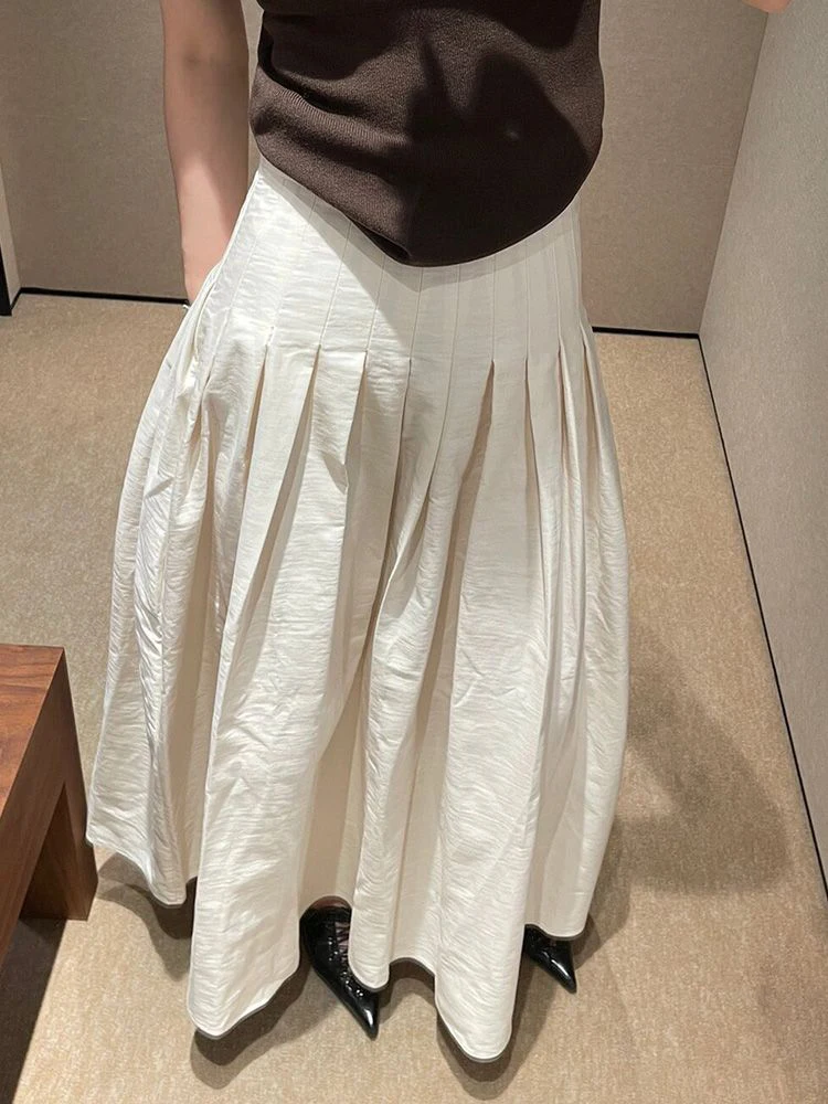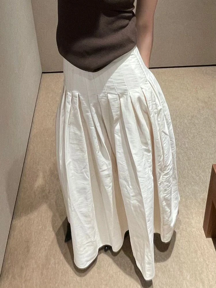Summer Vintage High Waist Skirt Fashion Korean Female Autumn Pleated A-line Skirt Lady Office Maxi Skirts Women