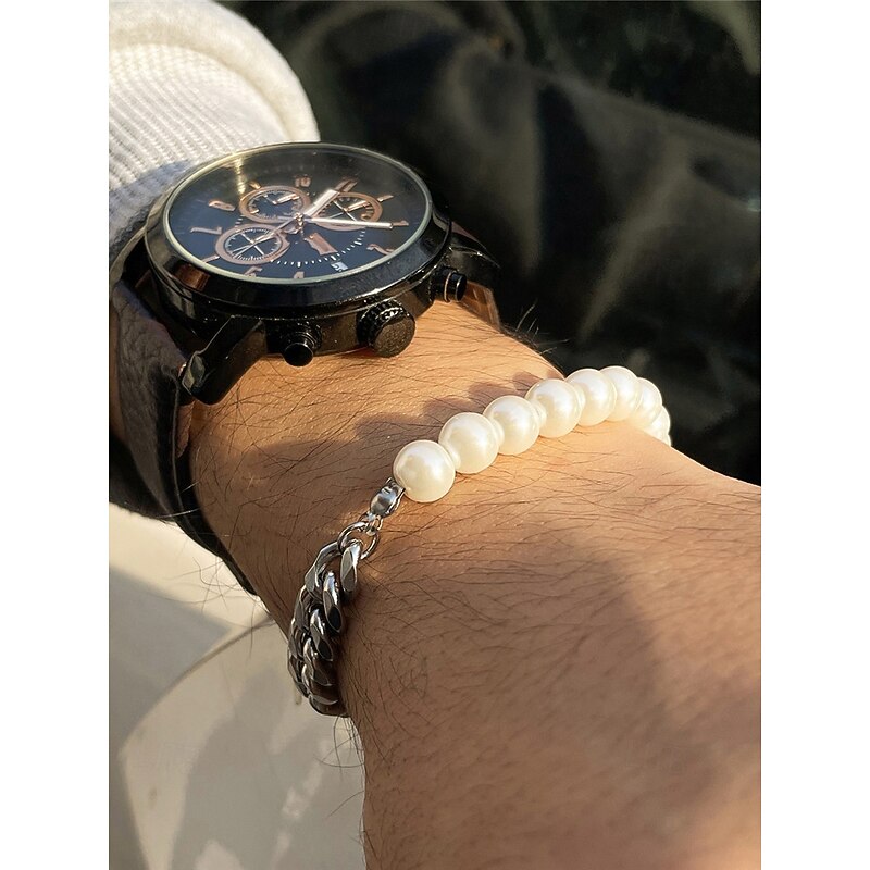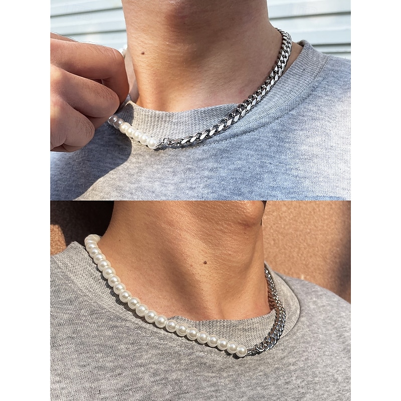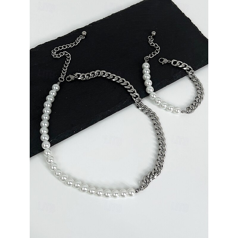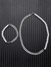 $7.99 - Men's Pearl and Chain Jewelry Set – Trendy Half Pearl Half Metal Necklace and Bracelet for Streetwear, Hip-Hop Style and Party Fashion 2025. Shop for cheap Men's Jewelry online? Buy at lightinthebox.com on sale today!