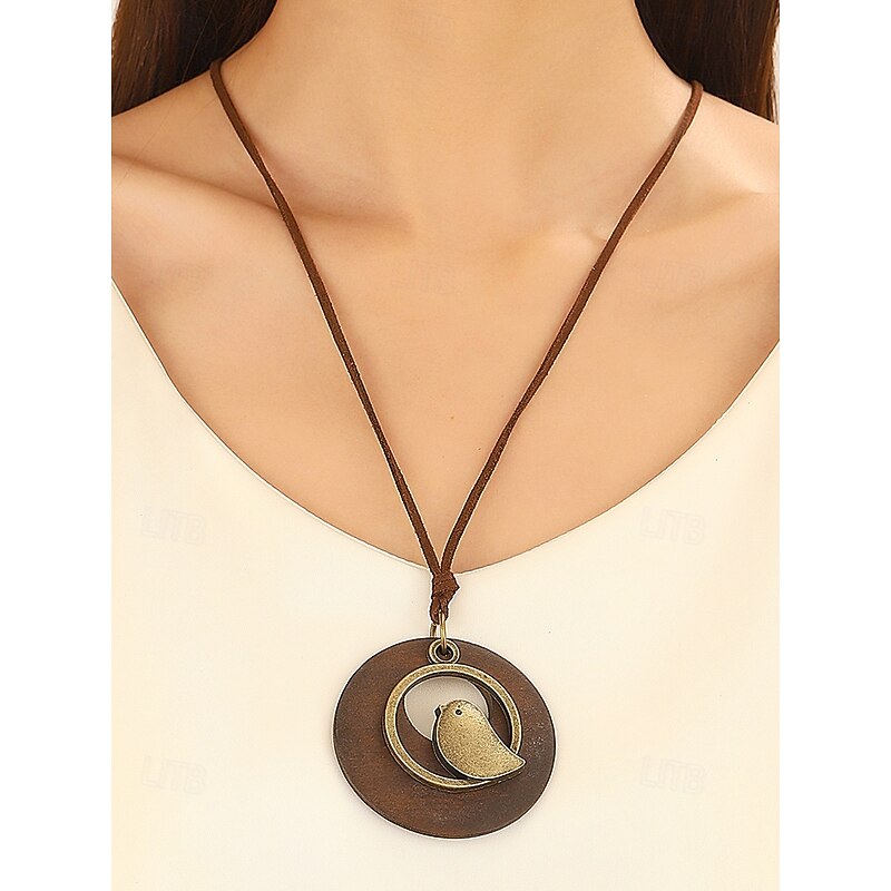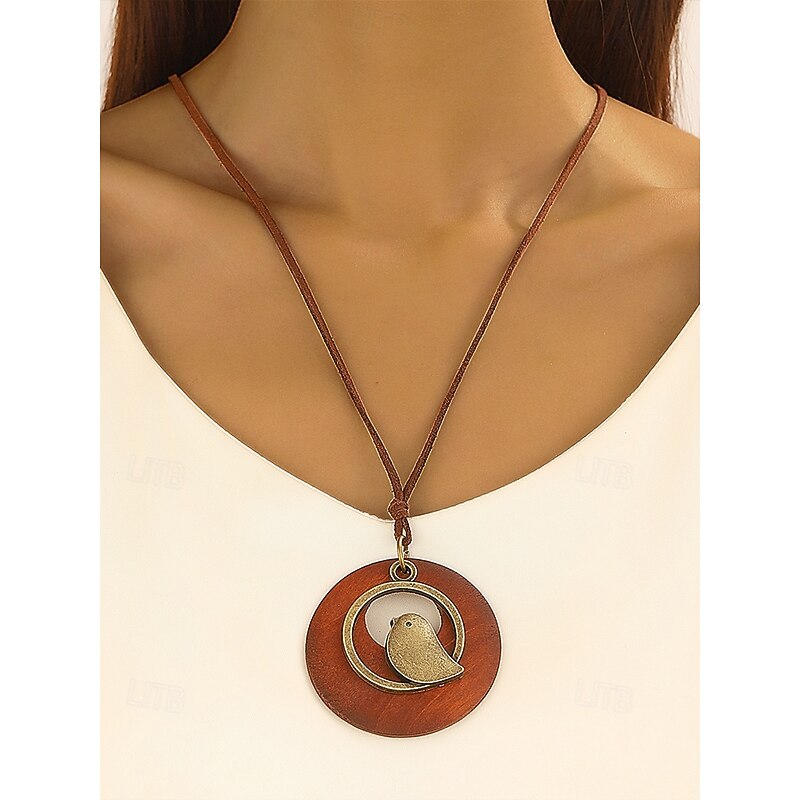 $7.99 - Women's Bohemian Bird Pendant Necklace – Handmade Long Wooden Circle Necklace with Alloy Charm for Nature Lovers, Casual Outfits or Gifts 2025. Shop for cheap Women's Necklace online? Buy at lightinthebox.com on sale today!