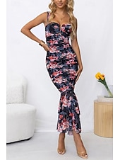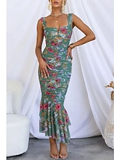 More information about Women's Midi Dress Slip Dress Print Dress Ruched Dress Fashion Vacation Going out Weekend Regular Fit Flower Sleeveless Spaghetti Strap Black White Green Summer