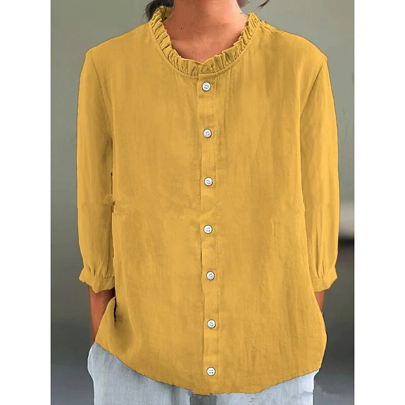 HOT ! Valentine's Day Women's Petite Shrugs Solid Color Casual 3/4 Length Sleeve High Neck Regular Tops Daily Ruched Patchwork Black White Yellow Pink Green Spring Fall