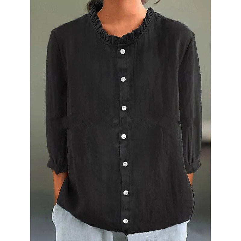 Valentine's Day Women's Petite Shrugs Solid Color Casual 3/4 Length Sleeve High Neck Regular Tops Daily Ruched Patchwork Black White Yellow Pink Green Spring Fall 11
