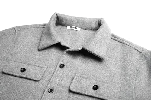 COOFANDY Flannel Jacket For Mens Fleece Plaid Shirt Solid Flannel Cropped Shacket Western Shirt Jackets Grey 6